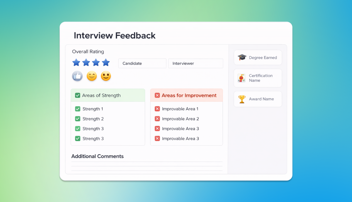 Instead of scattered notes and subjective impressions, your team gets a repeatable framework for reviewing candidates fairly.
