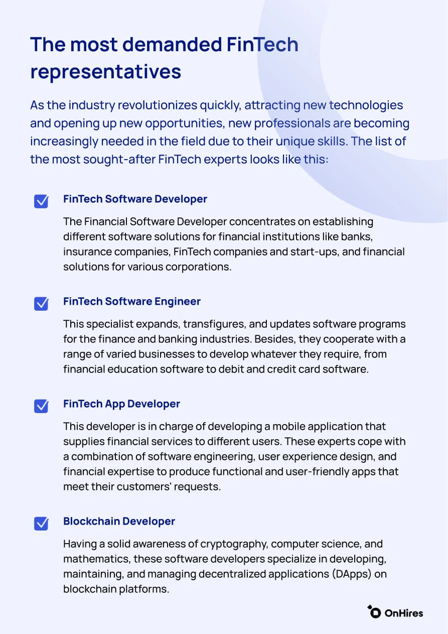 - about the stages, peculiarities, and challenges of hiring FinTech experts.
